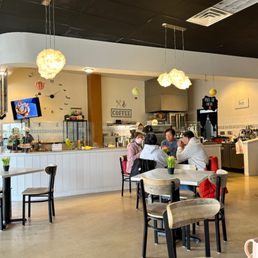 Cute little places with indoor and outdoor seating. You order at the counter and wait for your food to arrive. It took a bit for our food to arrive but everyone was very nice. My husband had the BLT crepe, which he enjoyed and I had the chicken pesto panini w/chips and really enjoyed it as well. I also tried the brown sugar cold brew and the coffee had great flavor and didn't taste burnt. Cute little place to grab a semi healthy meal